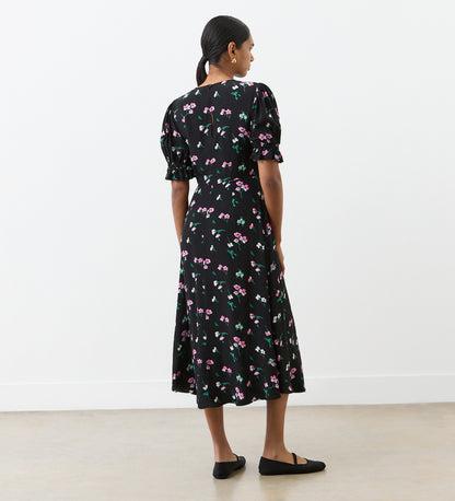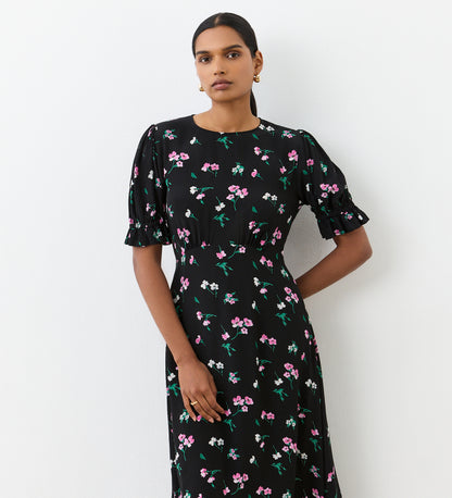 Mela Black Floral Crepe Midi Dress