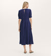 Featuring a round neckline and short puff sleeves finished with ruffle cuffs, Mela is a midi dress crafted from soft fabric. Gently defined at the waist, she fastens with a discreet side zip. A classic feminine wardrobe addition, she's a versatile piece that pairs effortlessly with both casual and polished styling.