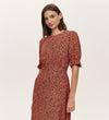 Mela Orange Leopard Crepe Midi Tea Dress