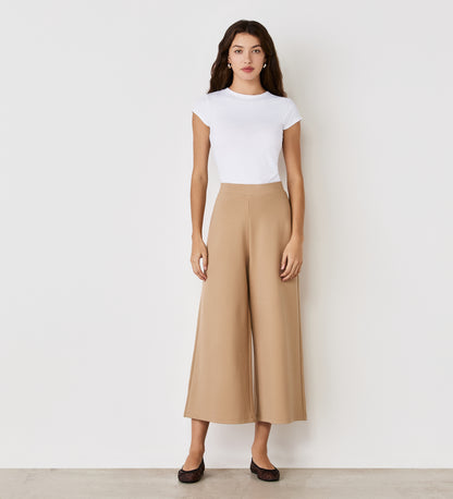 Miribel Beige Ponte Jersey Wide Leg Trousers