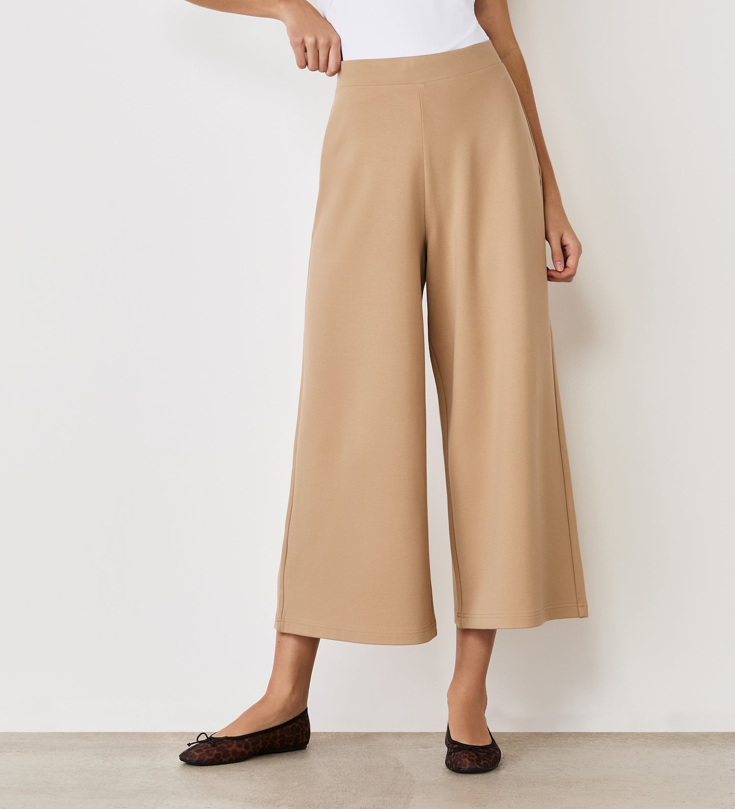 Cropped in length, we love our versatile Miribel beige wide-leg cropped trousers. High waisted and made of comfortable ponte jersey, she's a flattering fit you can style easily with an array of tops, shirts or blouses.