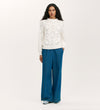 In a delicate diamond pointelle knit, Odette is a round-neck jumper that blends timeless texture with everyday ease. Designed with long sleeves and finished with ribbed detailing at the neckline, cuffs, and hem, this versatile knit offers a flattering fit and subtle elegance. Perfect for layering or wearing solo, Odette brings a touch of sophistication to both casual and elevated looks.