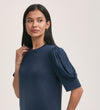 A navy crew-neck t-shirt crafted from our signature jersey fabric, Oriel features short sleeves with gathering detail. Flattering and versatile, she’s the perfect essential for your everyday wardrobe. Classic and crisp, this true white shade offers a fresh, timeless appeal.