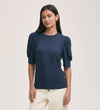 A navy crew-neck t-shirt crafted from our signature jersey fabric, Oriel features short sleeves with gathering detail. Flattering and versatile, she’s the perfect essential for your everyday wardrobe. Classic and crisp, this true white shade offers a fresh, timeless appeal.