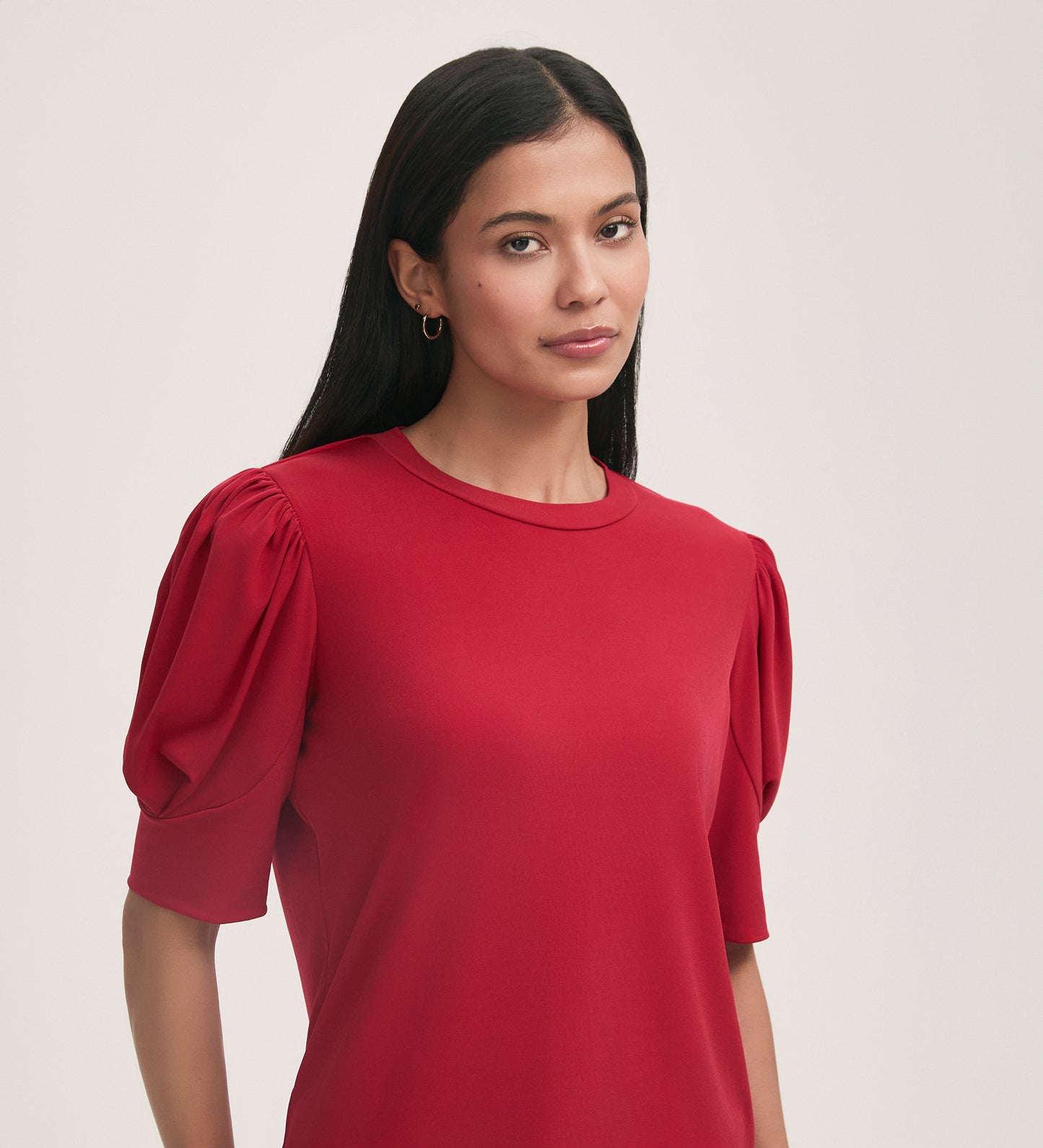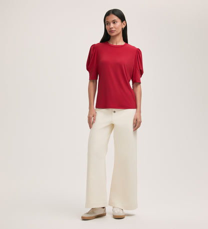 A red crew-neck t-shirt crafted from our signature jersey fabric, Oriel features short sleeves with gathering detail. Flattering and versatile, she’s the perfect essential for your everyday wardrobe. Classic and crisp, this true white shade offers a fresh, timeless appeal.
