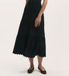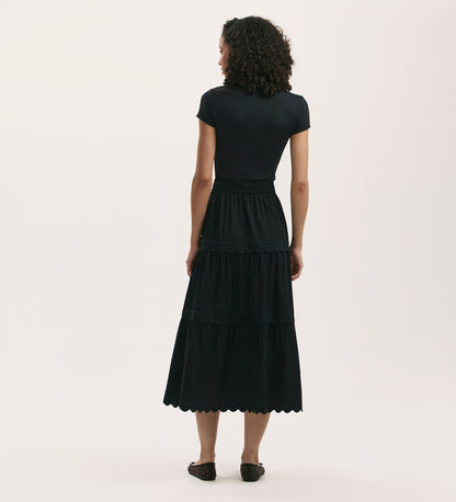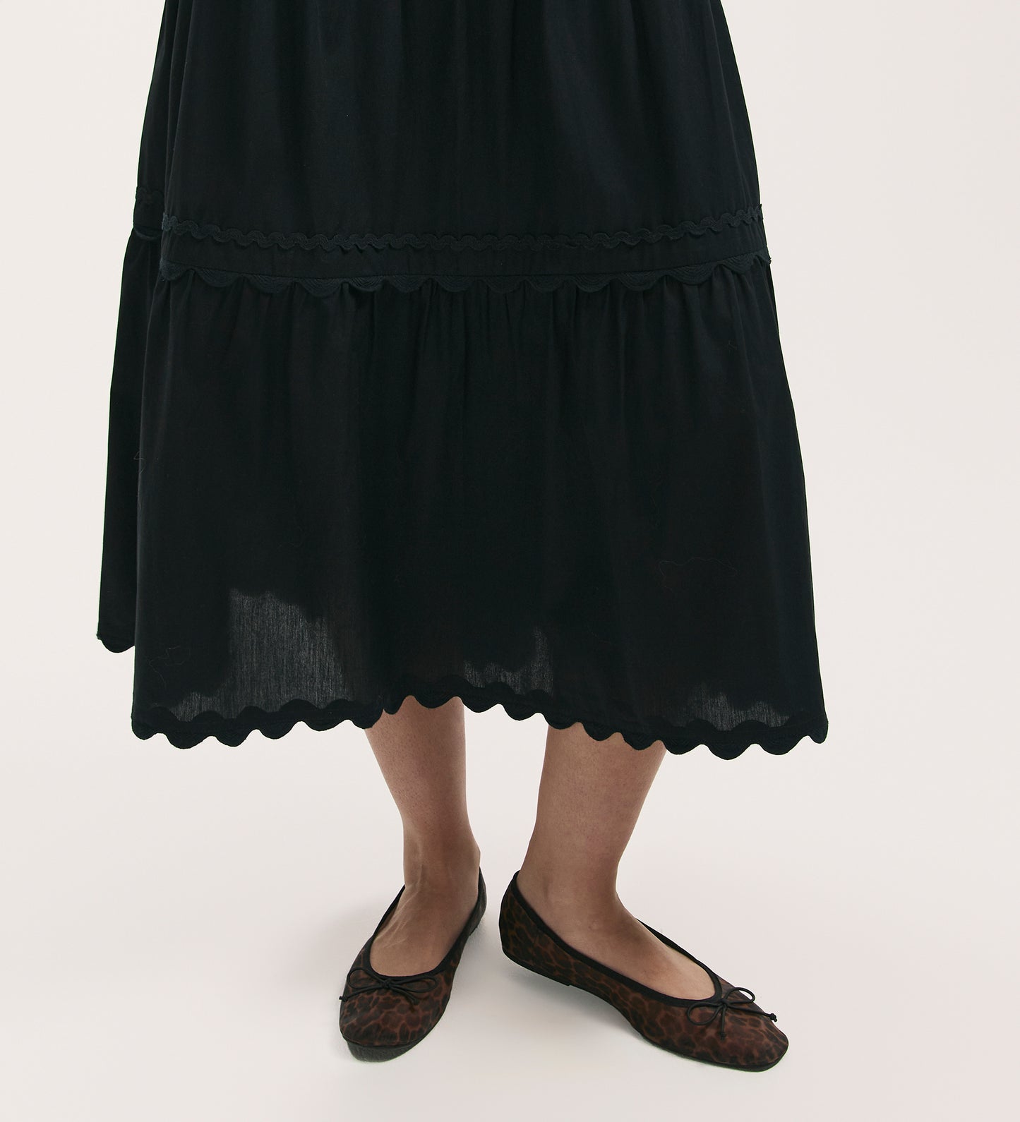Paula Black Cotton Ric Rac Trim Midi Skirt