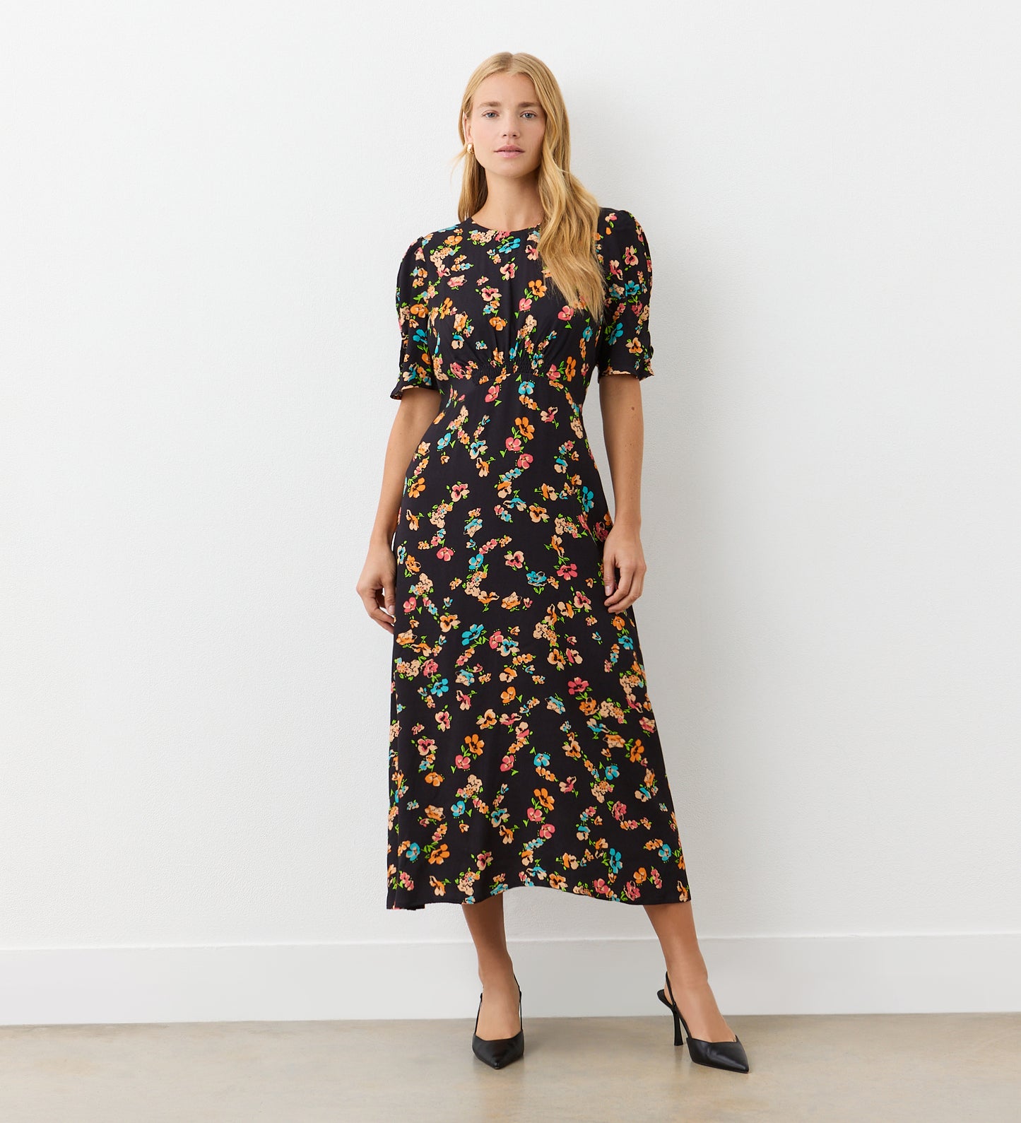 We love the gathered sleeve detail on our Prue midi dress. Crafted from crepe with an empire line, shirred waist, she also features a round neckline.
