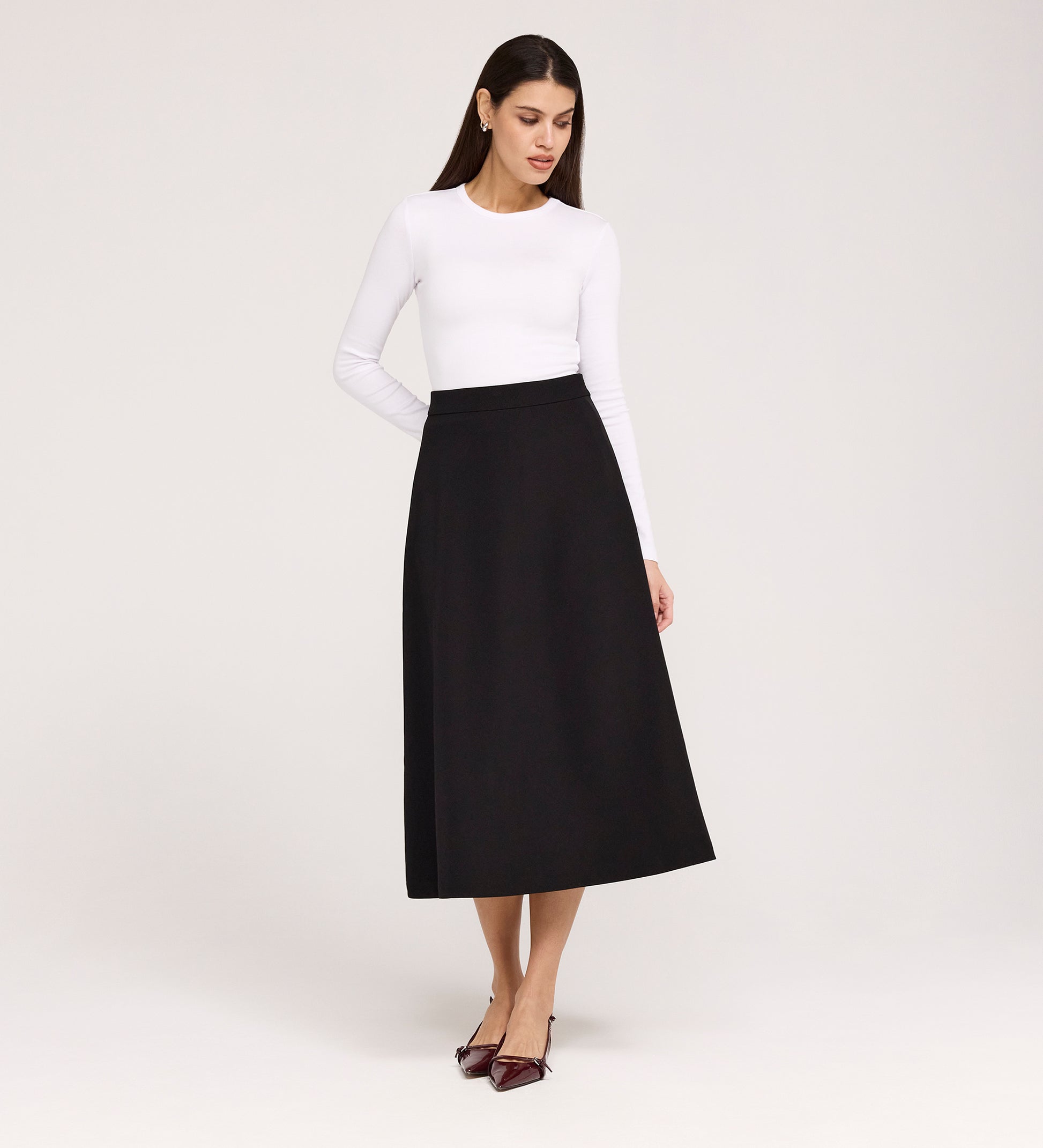 • Timeless midi skirt length
