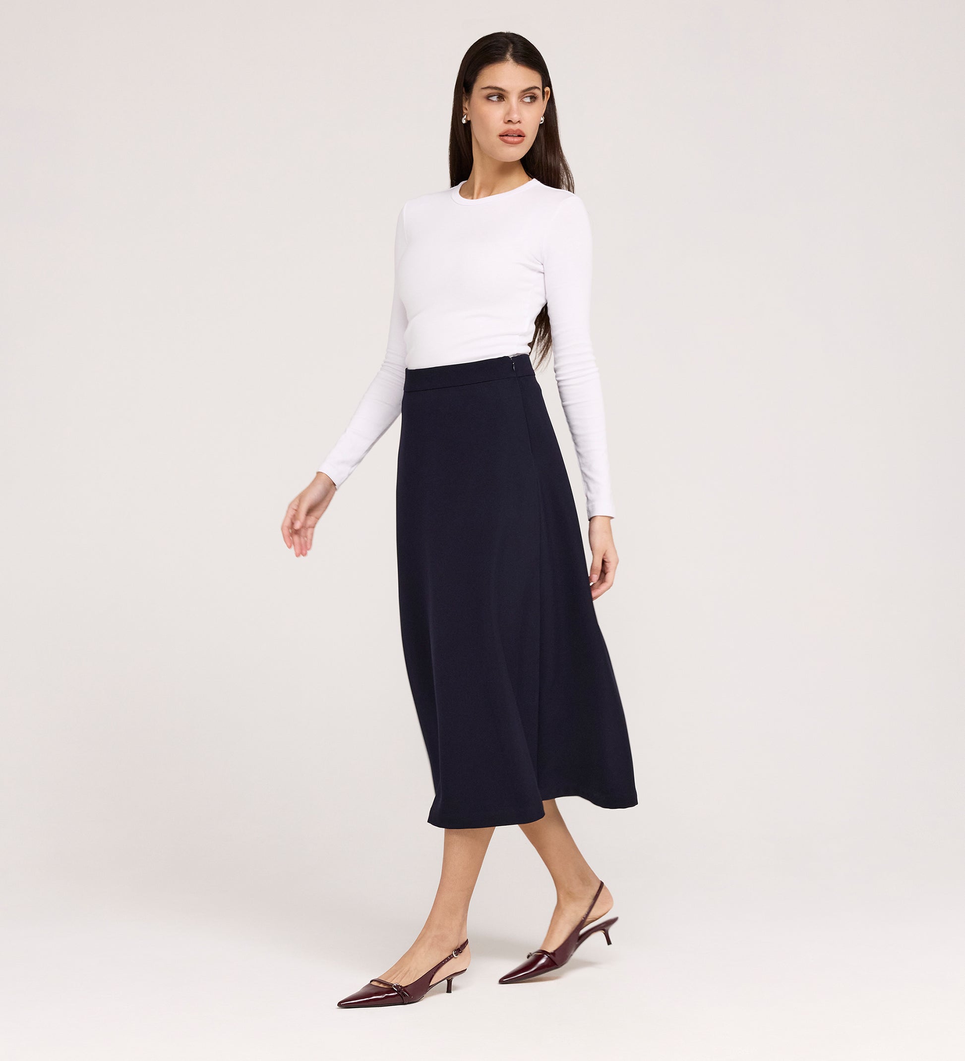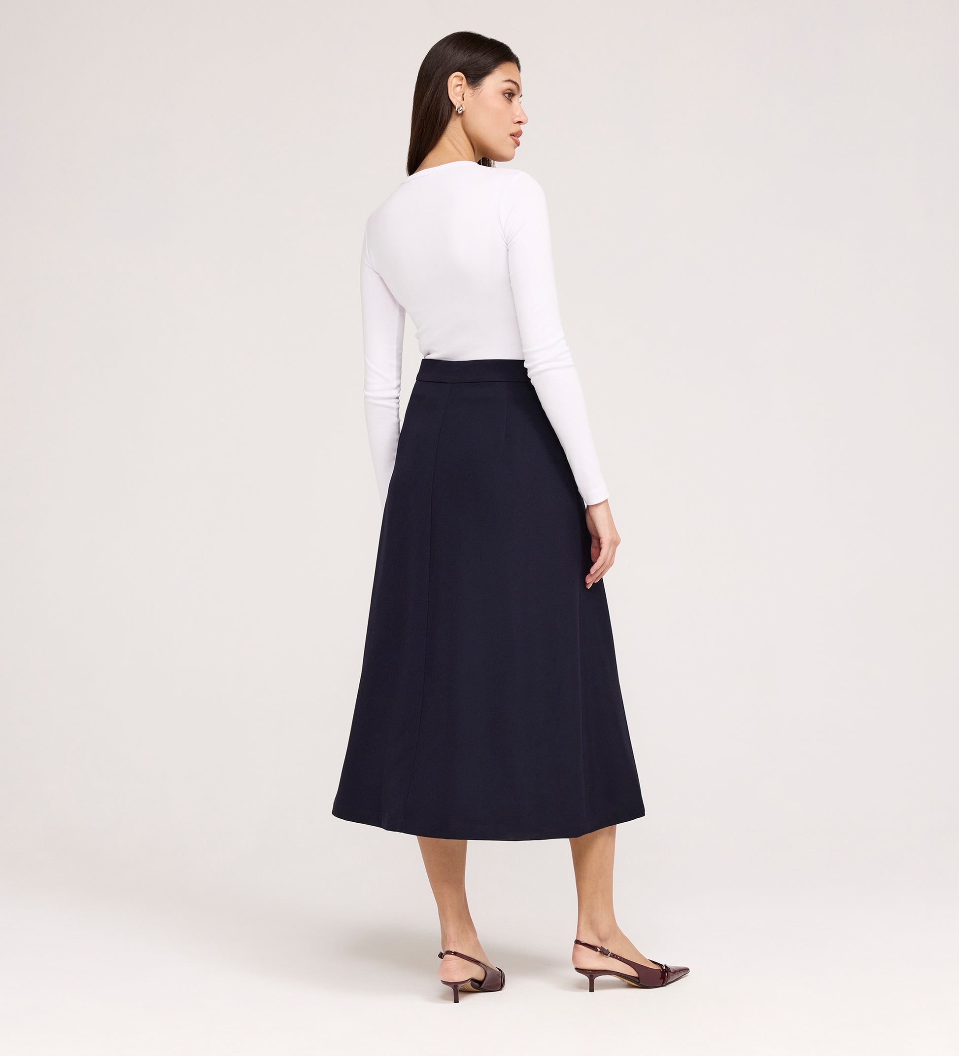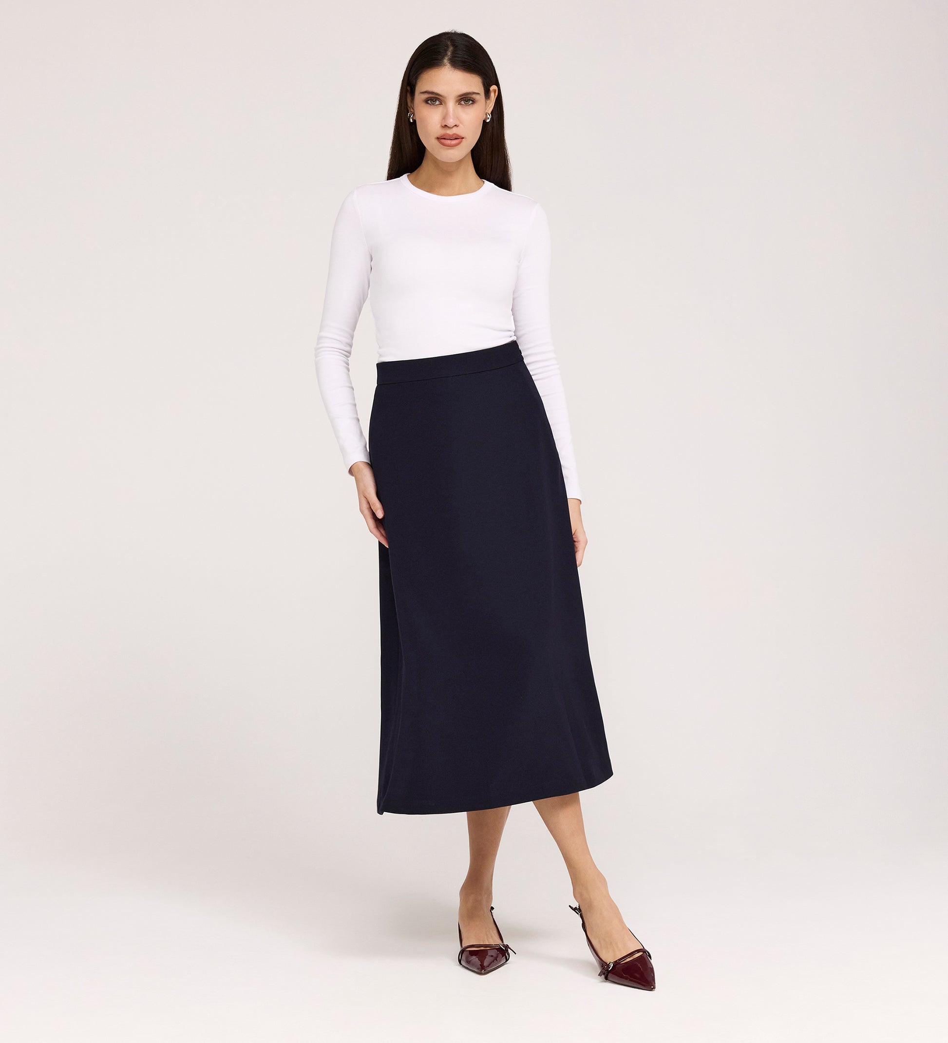 • Timeless midi skirt length