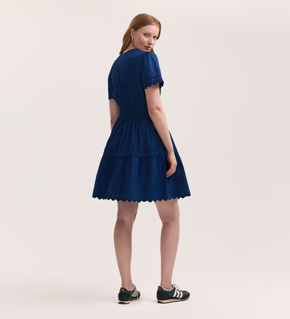 Reece Indigo Ric Rac Trim Cotton Short Dress