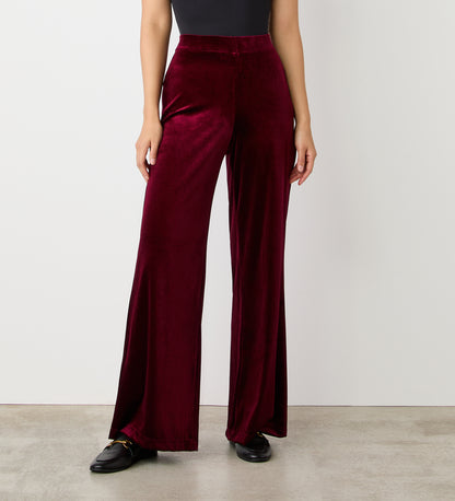 Meet our Reyna trousers, a key piece for comfort and statement styling. Made from a luxurious velvet, these trousers have a loose fit, wide leg cut and a flattering high-rise waistband. We suggest pairing with trainers or with heels.