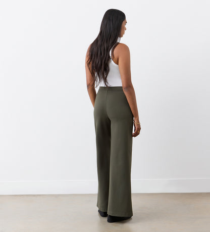 Reyna Khaki Ponte Jersey Wide Leg Trousers