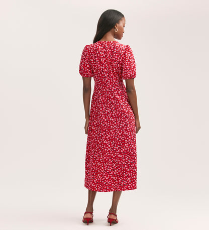 Robyn Red Ditsy Crepe Midi Tea Dress