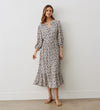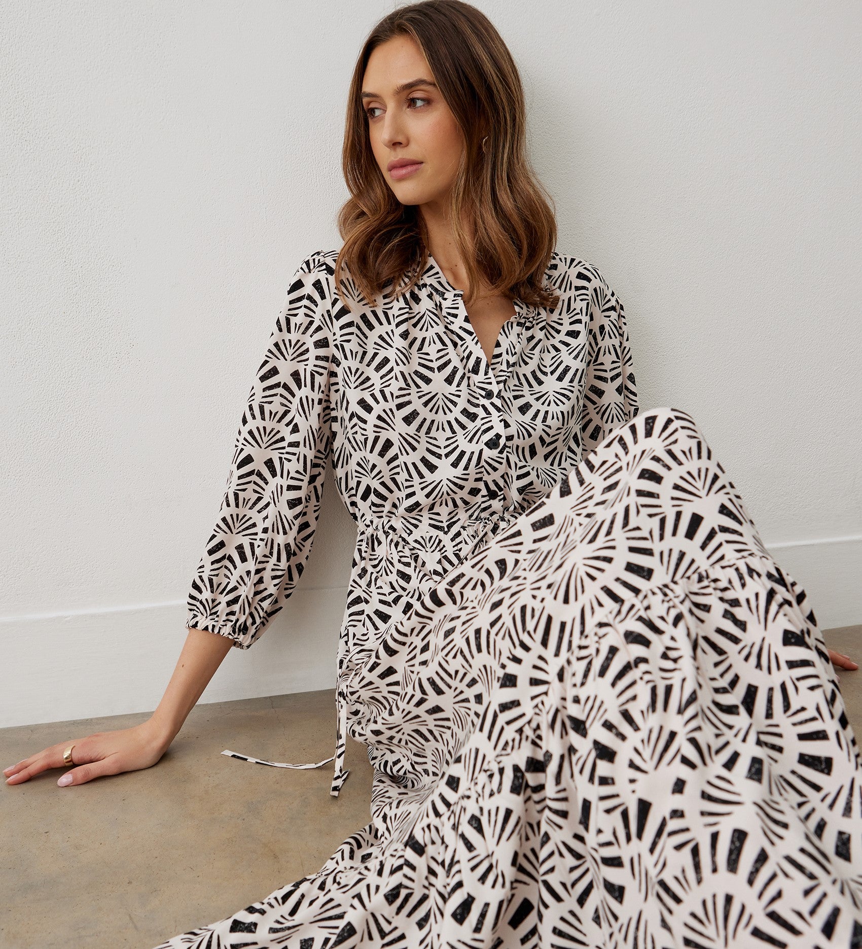 Oversized in style, Rosie is a midi length dress with a elasticated waist that features tie detail. Long sleeves and a v-neckline add to this effortless look that's both stylish and comfortable. Layer over a denim jacket or a woolly jumper.