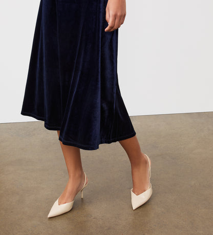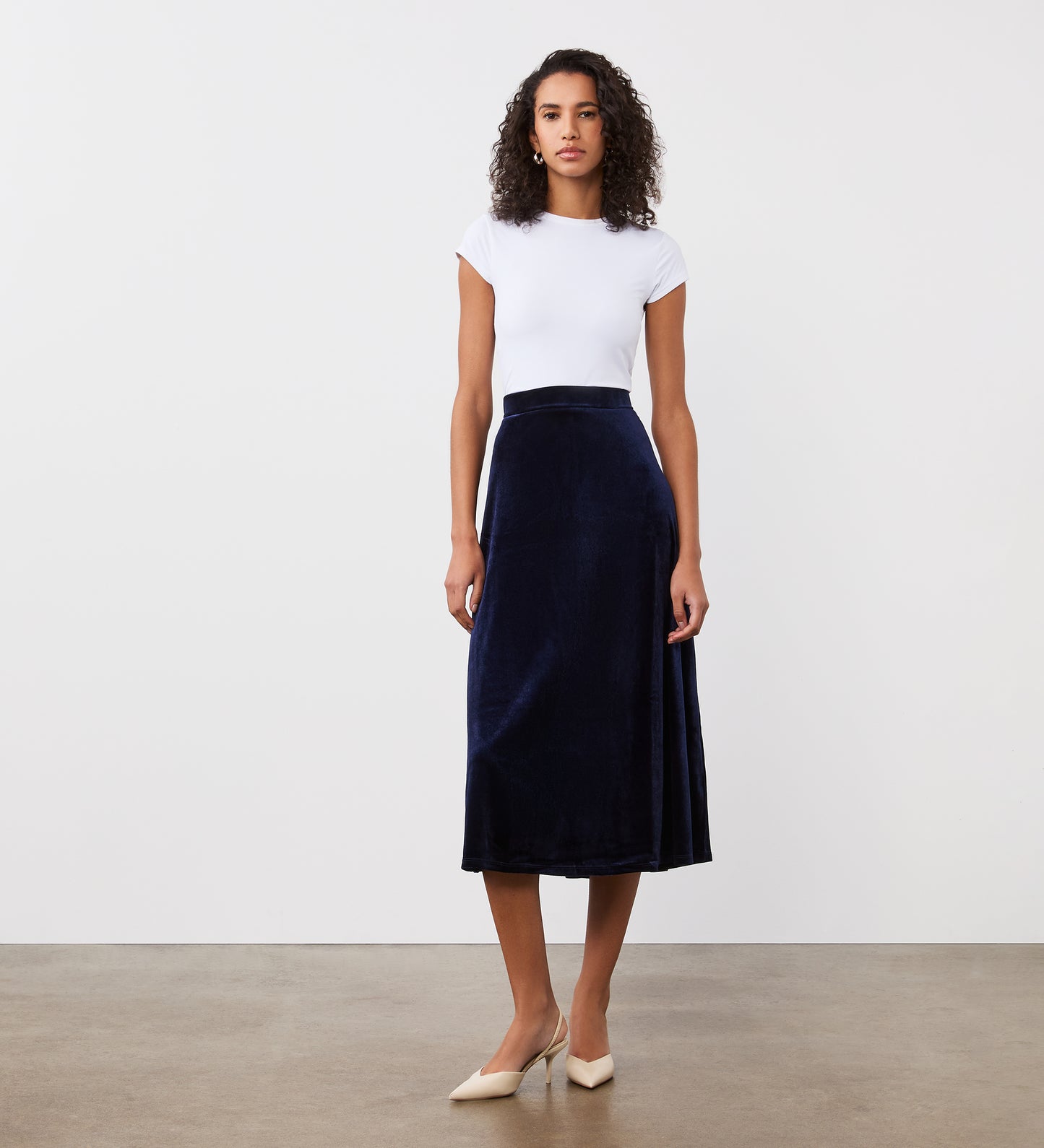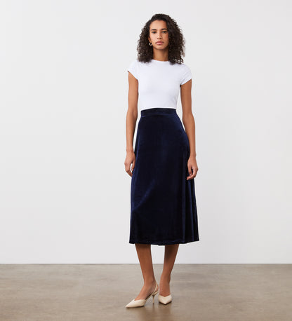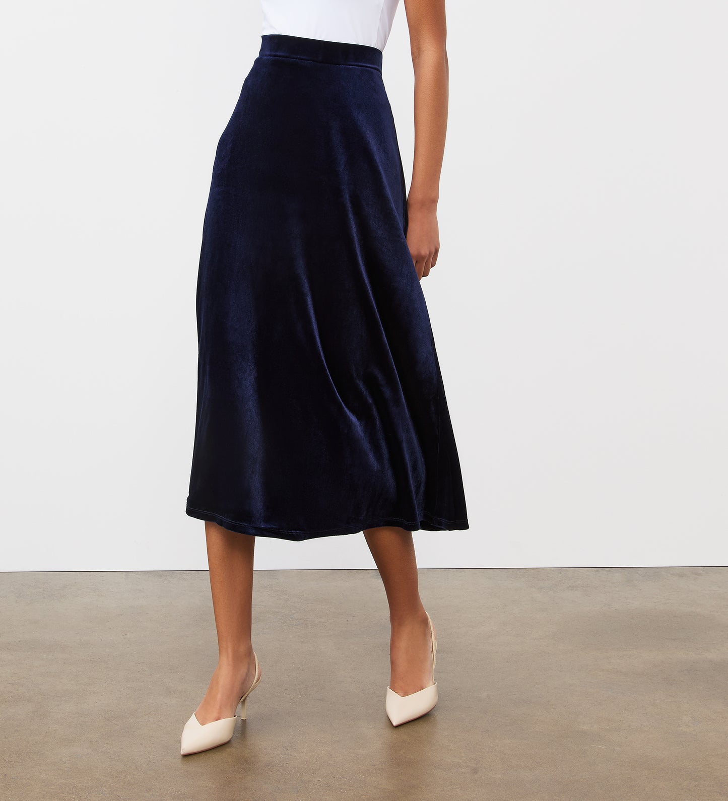 We love this A-line Velvet midi skirt. With a thick waistband for comfort, Ruth is a versatile wardrobe staple you can pair with shirts, jumpers and tops.