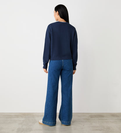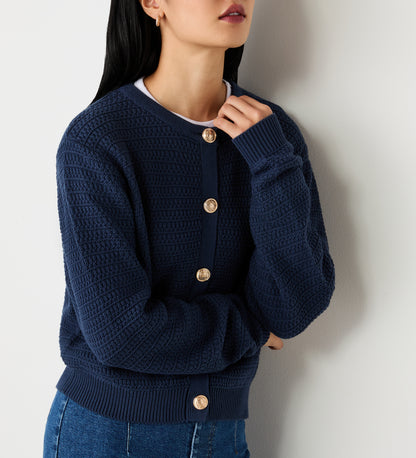Saskia Dark Navy Button Up Cotton Cardigan