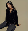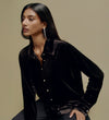 The Sayge Shirt is designed to add an element of luxury to your wardrobe. Crafted from sumptuous velvet fabric, this shirt features a classic collar and is buttoned through with dazzling contrast buttons. The long sleeves are finished with refined cuffs, complete with a matching double button detail. An essential piece for sophisticated day-to-evening styling.