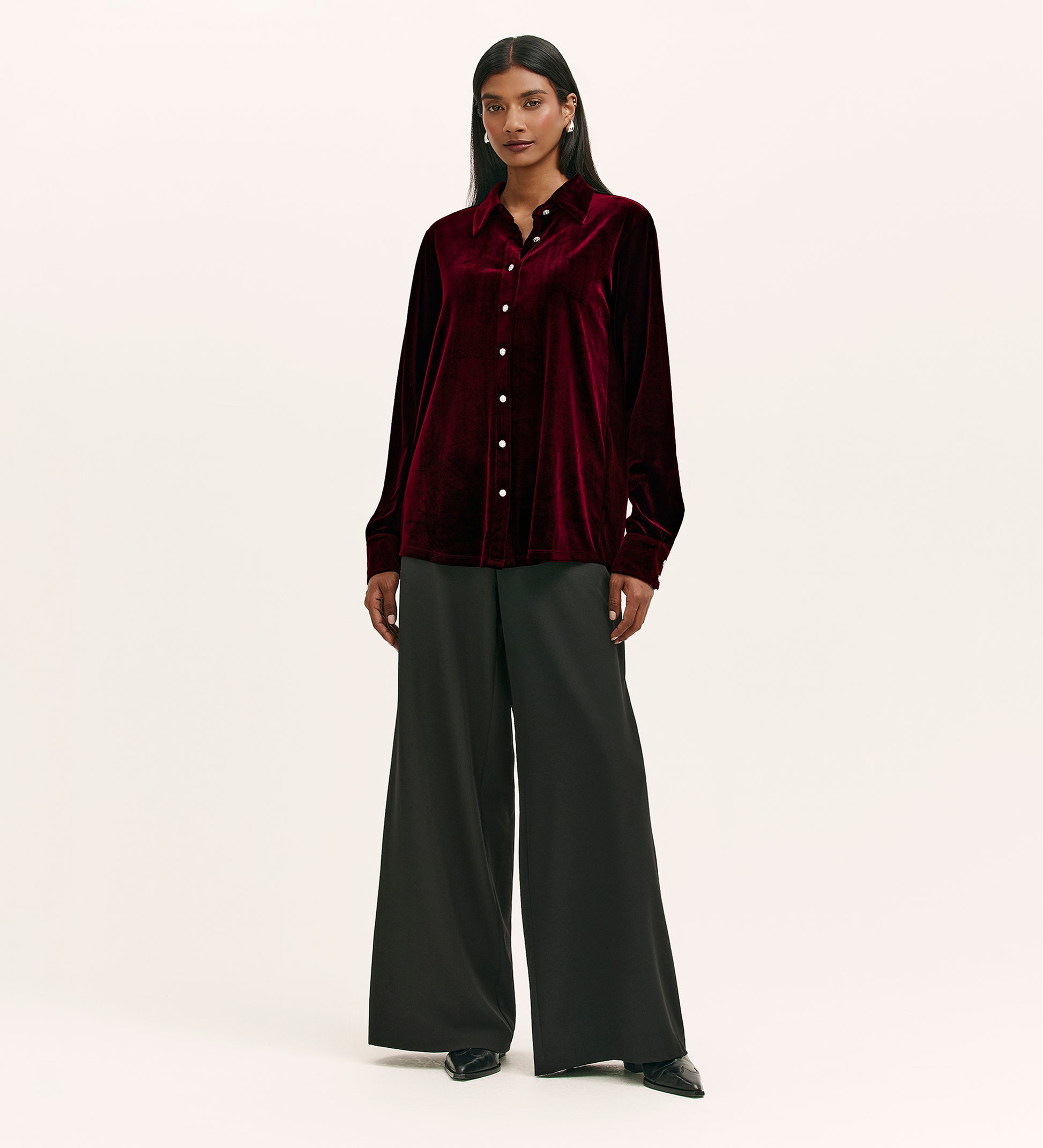 The Sayge Shirt is designed to add an element of luxury to your wardrobe. Crafted from sumptuous velvet fabric, this shirt features a classic collar and is buttoned through with dazzling contrast buttons. The long sleeves are finished with refined cuffs, complete with a matching double button detail. An essential piece for sophisticated day-to-evening styling.