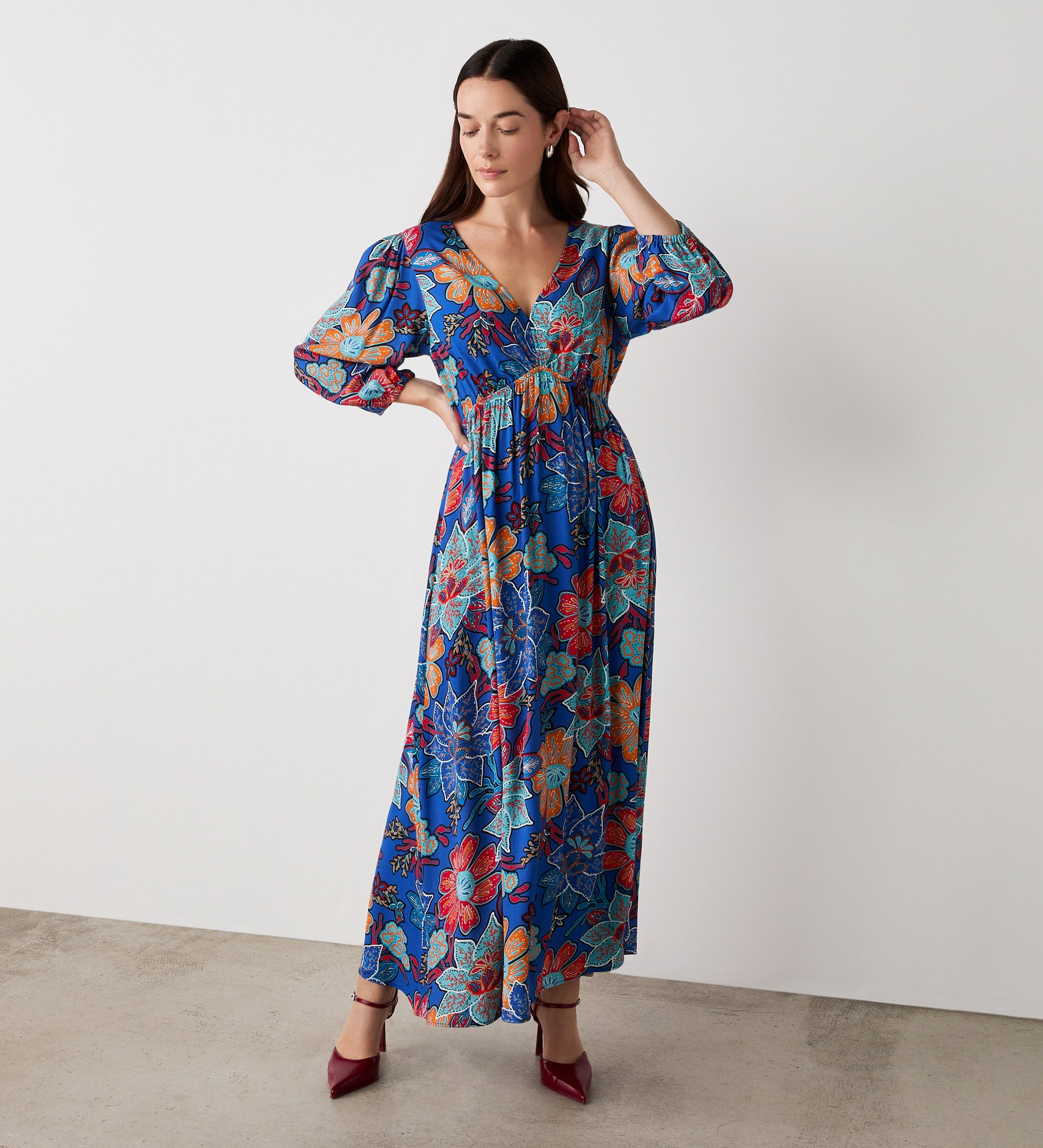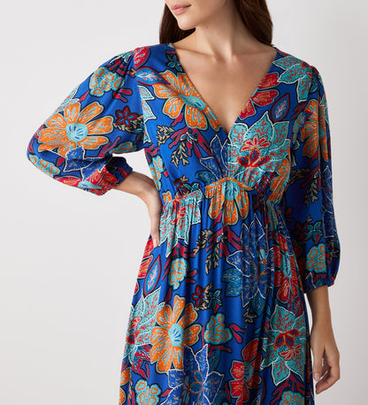 Crafted from our signature crepe fabric, Serena is a floral go to for every season. Midi in length with a flattering elasticated empire waist and feminine v-neckline, she also has three-quarter length sleeves with elasticated cuffs, adding to the fit and flare style.