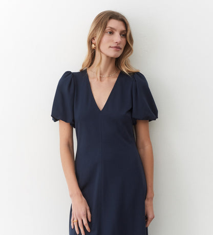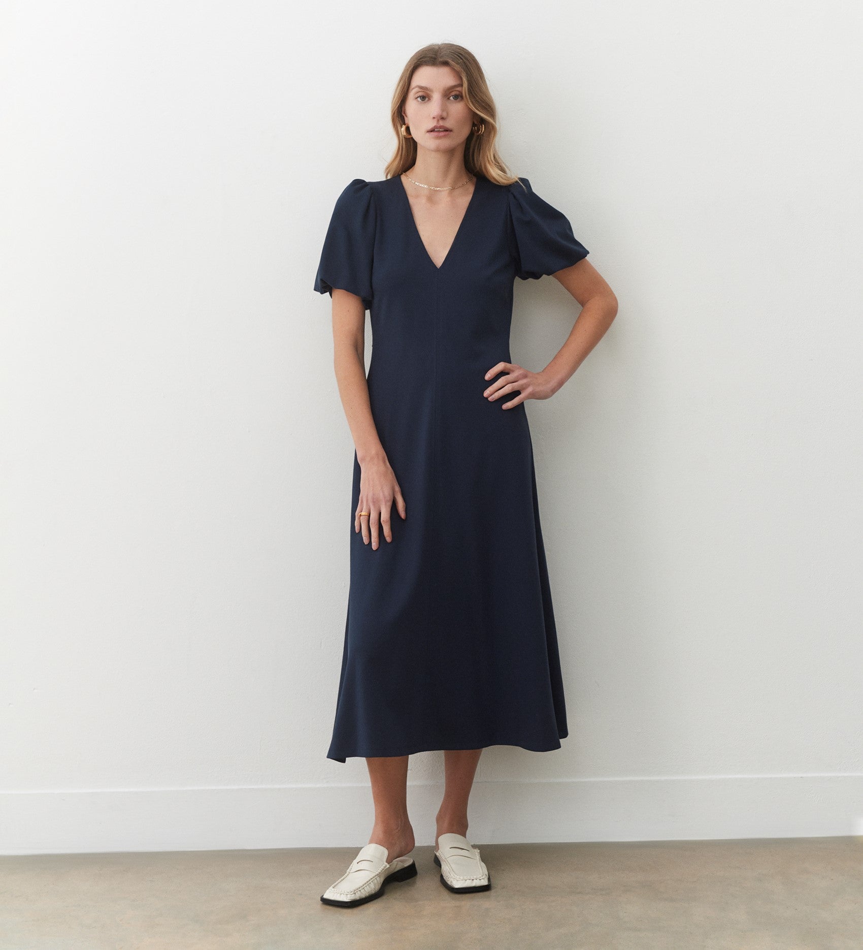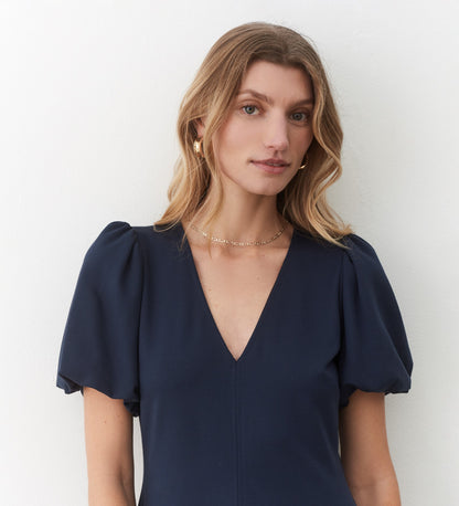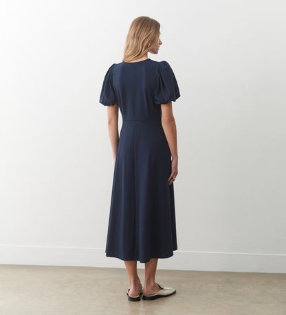 Crafted from our signature Ponte jersey, Sophie is an A-line midi dress with a feminine v-neckline and bust dart detail. Fit and flare in style she also features short, puffed sleeves with elasticated cuffs.