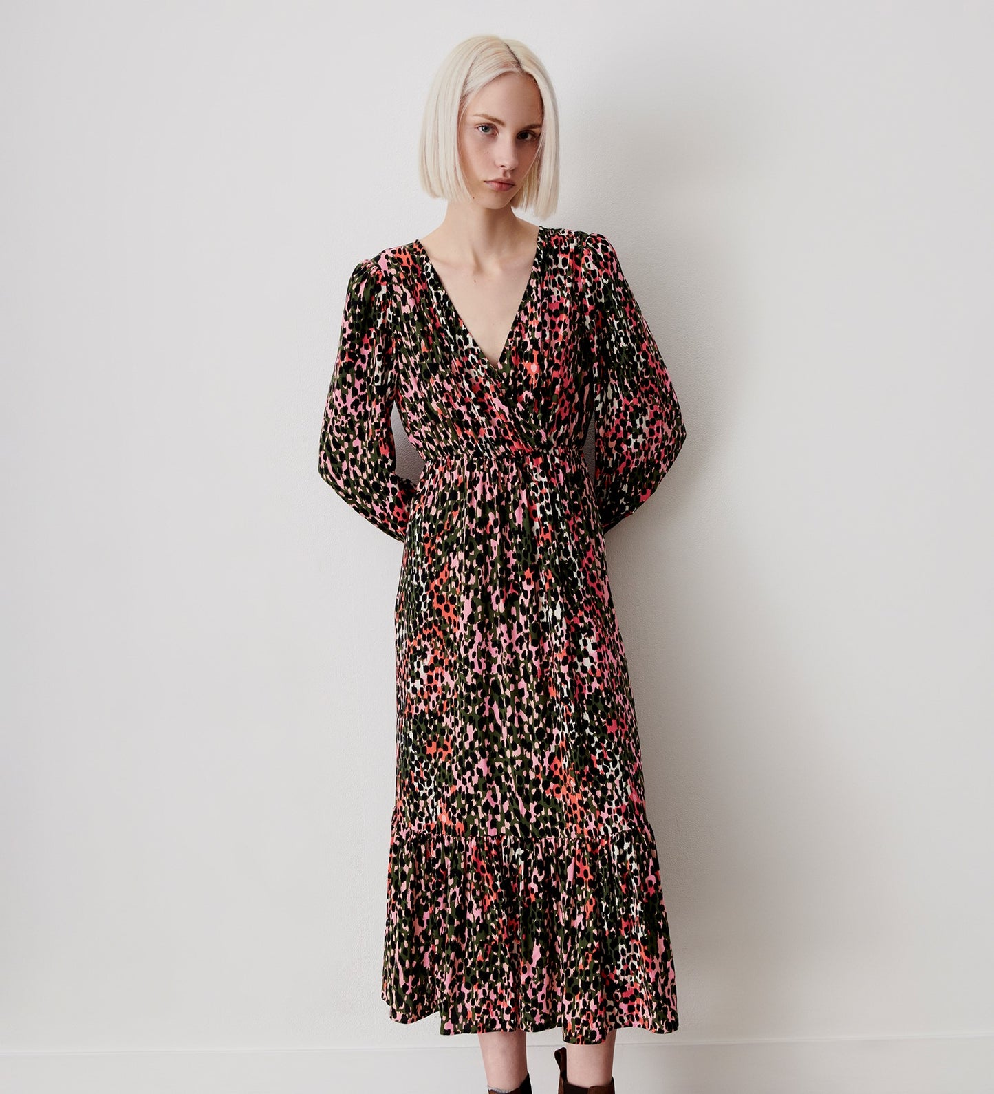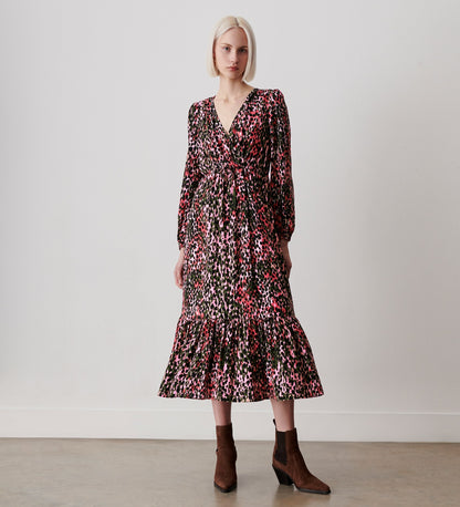 Suzie is a mock wrap midi dress that is both comfortable and effortlessly stylish. With a tiered hemline and long sleeves, she features a flattering elasticated waist and matching elasticated cuffs. Dress up with heels or down with ankle boots.