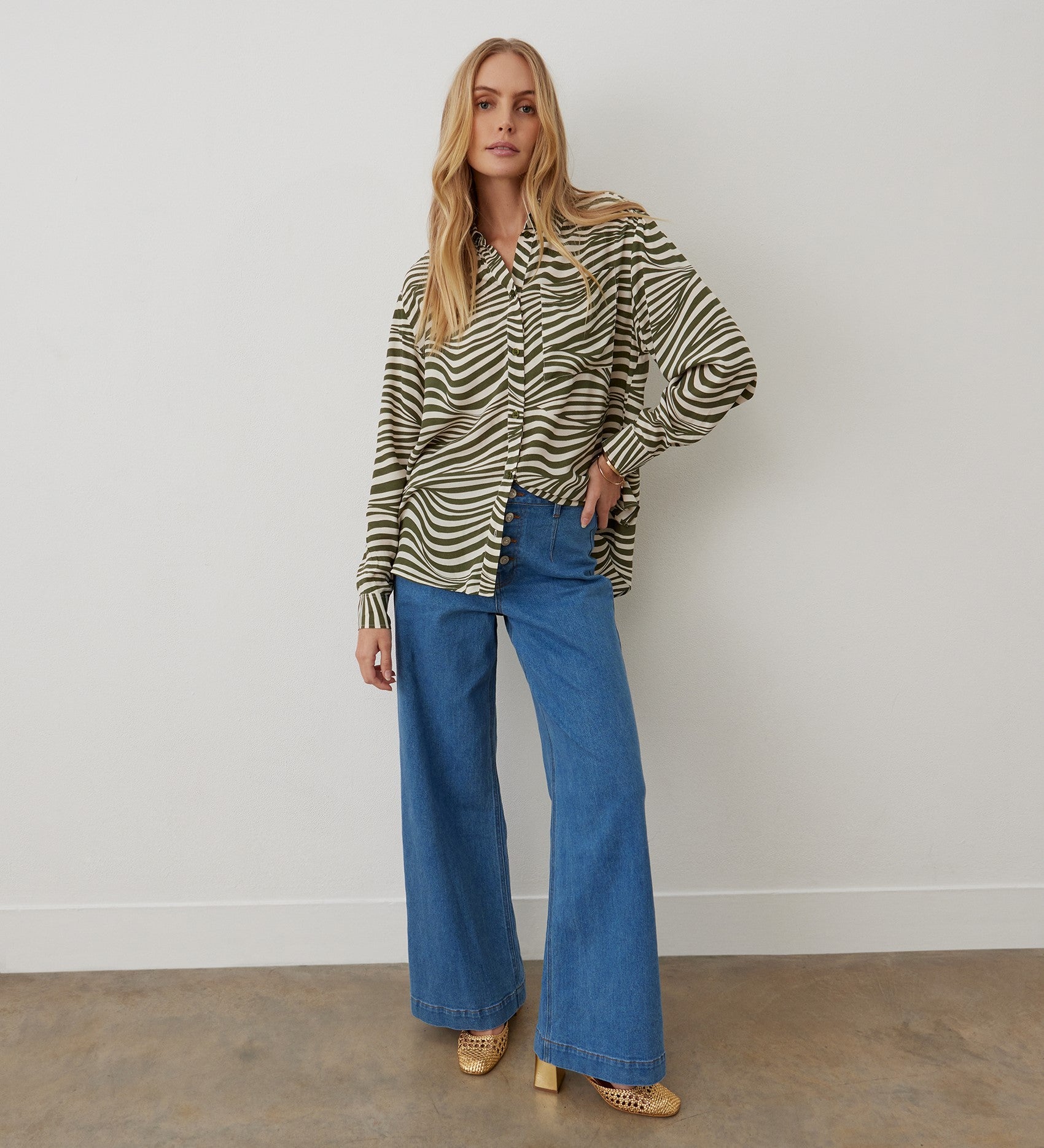 Relaxed and oversized, Tabitha is a classic stripe shirt with a front patch pocket. Dressed up or down, she's a versatile wardrobe addition.