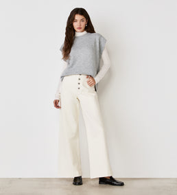 Our Tally Wide Leg Jeans adopt the super-flattering leg shape from the 1970's. Made with our comfortable stretch denim that sits on the natural waist with a trouser-style button fastening. Wear yours with a shirt and blazer for work, or with a ruffled blouse and boots for date night.