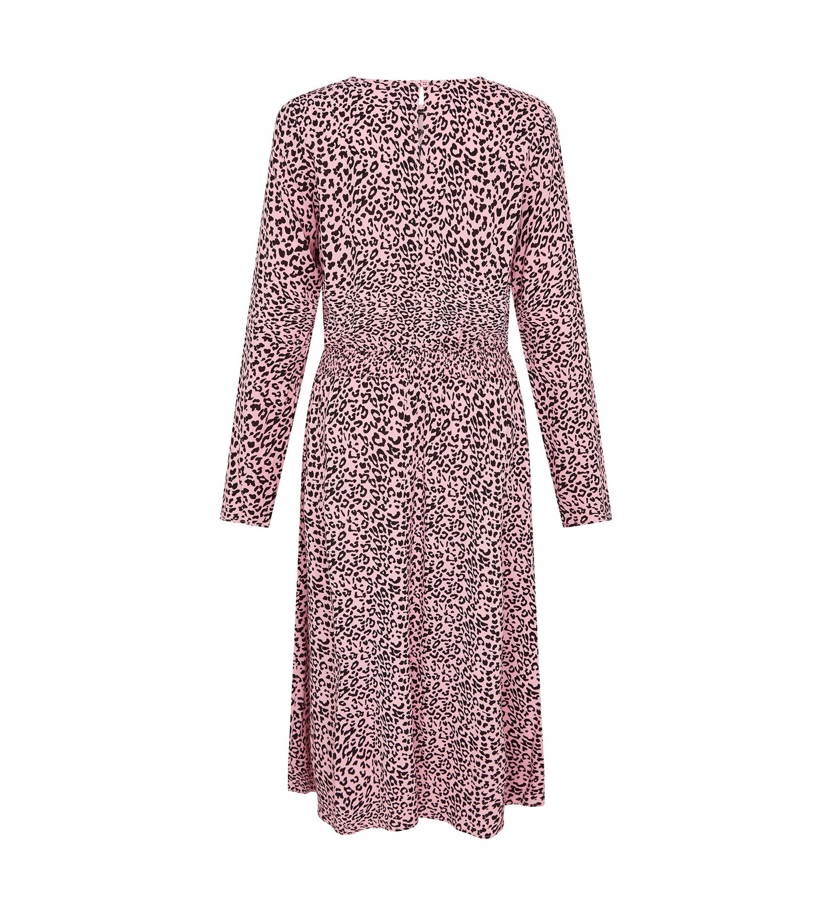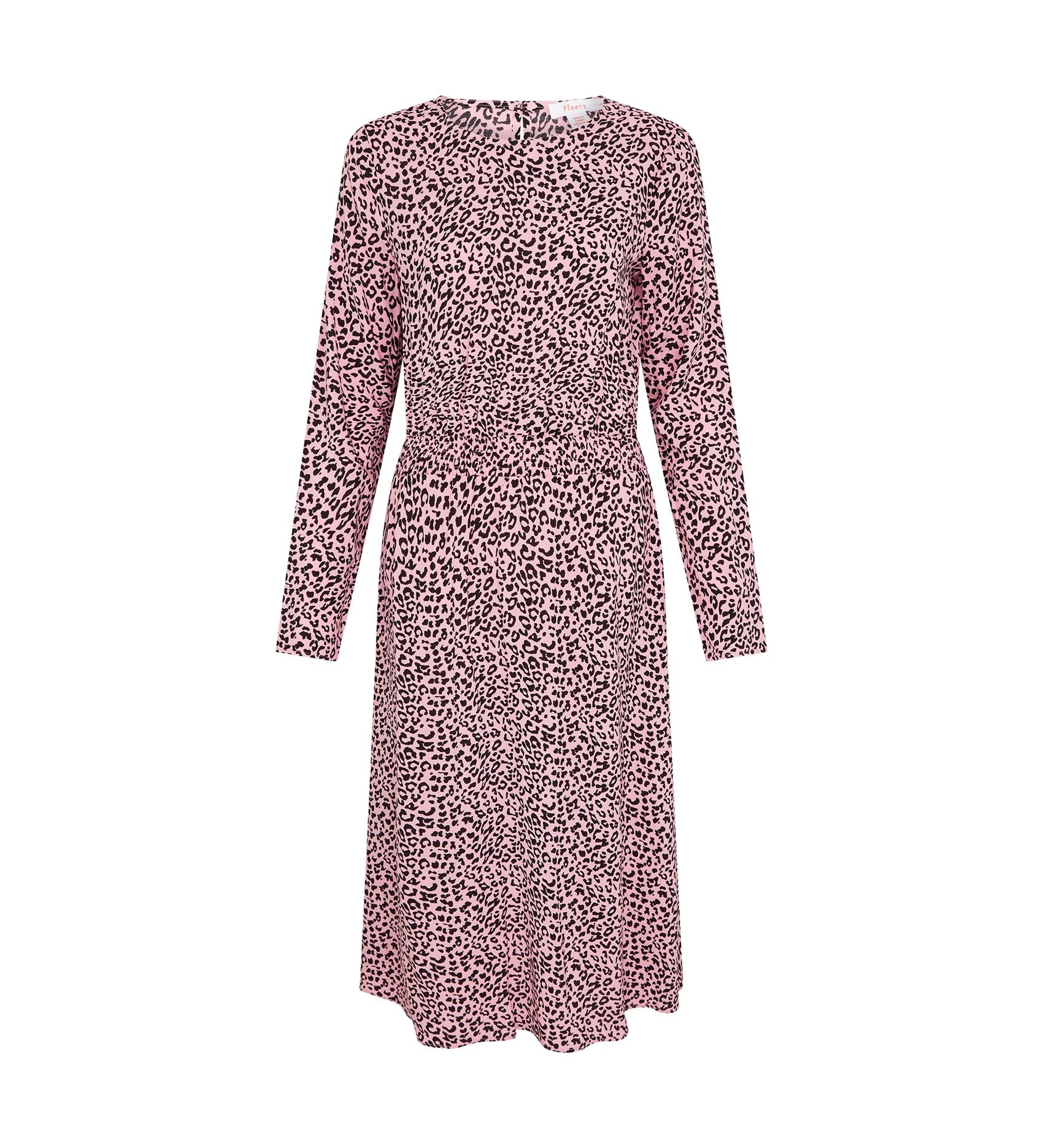 Embrace your wild side in our leopard print Theo midi dress. Made using our soft viscose, Theo flatters every figure, that's to her elasticated waist and long straight sleeves. A high neckline provides coverage and adds to the sleek drape this dress has to offer. Pair with boots, sneakers or heels.