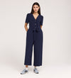 Uma Navy Crepe Short Sleeve Jumpsuit