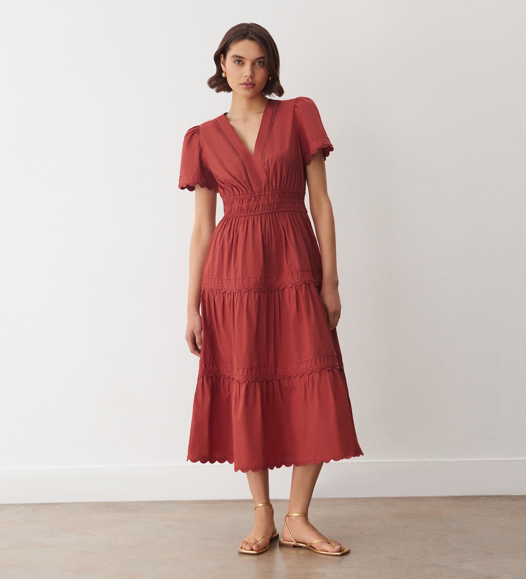 Wren Red Tiered Cotton Midi Dress