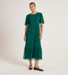The Yasmine Dress is an effortless choice for easy all in one styling. Crafted from a delicate floral embroidered mesh fabric, this version of the Yasmine offers a soft, textured look with a comfortable relaxed fit. It is defined by a classic round neckline and feminine short puff sleeves with elasticated cuffs for adjustable volume. The waist seam leads into a flowing tiered skirt, while a button and keyhole fastening at the back neck ensures a clean, polished finish.